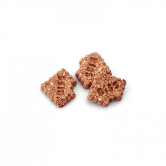 スペルト小麦*、オートブラン、米、果実の搾りかす、リンゴ(5%)、オートビールブラン、リグノセルロース、炭酸カルシウム、チコリ粉(0.5%イヌリン**)